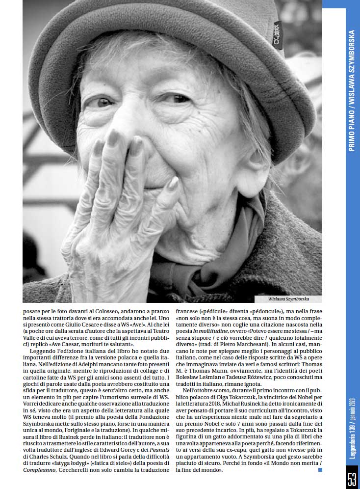 Per 15 anni le ha fatto da segretario condividendo con la grande poeta polacca Wislawa Szymborska lo sguardo ironico e profondamente umano sul mondo. Ora Michal Rusinek ce la racconta con l’affettuoso distacco divertito che lei avrebbe amato