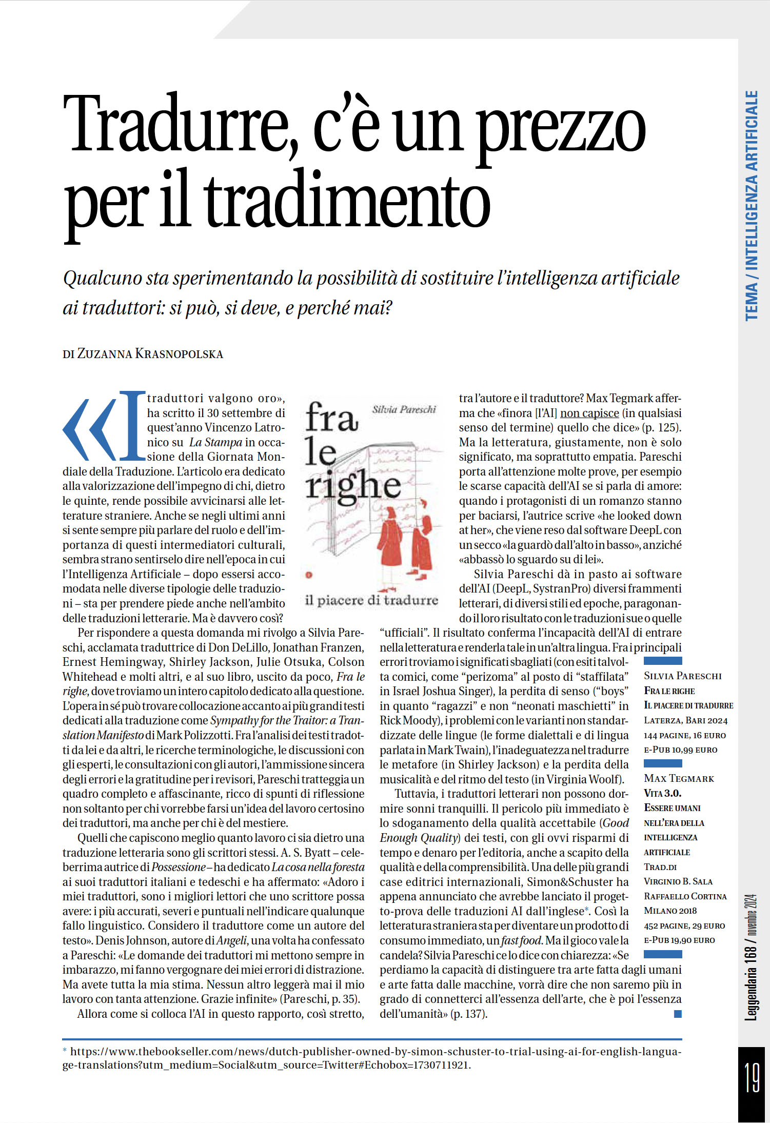 Leggendaria 168 | ottobre – novembre 2024 | AI Intelligenza Artificiale